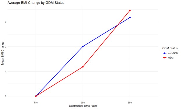 According to IOM guidelines [18], recommended BMI and weight gain between 28 and 35 weeks of pregnancy vary based on pre-pregnancy weight categories. While higher pre-pregnancy BMI is a well-established risk factor for GDM, there is limited research on how BMI and weight gain progress after GDM diagnosis (28–35 weeks) compared to non-GDM women. Additionally, the association between BMI changes and weight gain up to 28 weeks and the risk of developing GDM remains unclear.