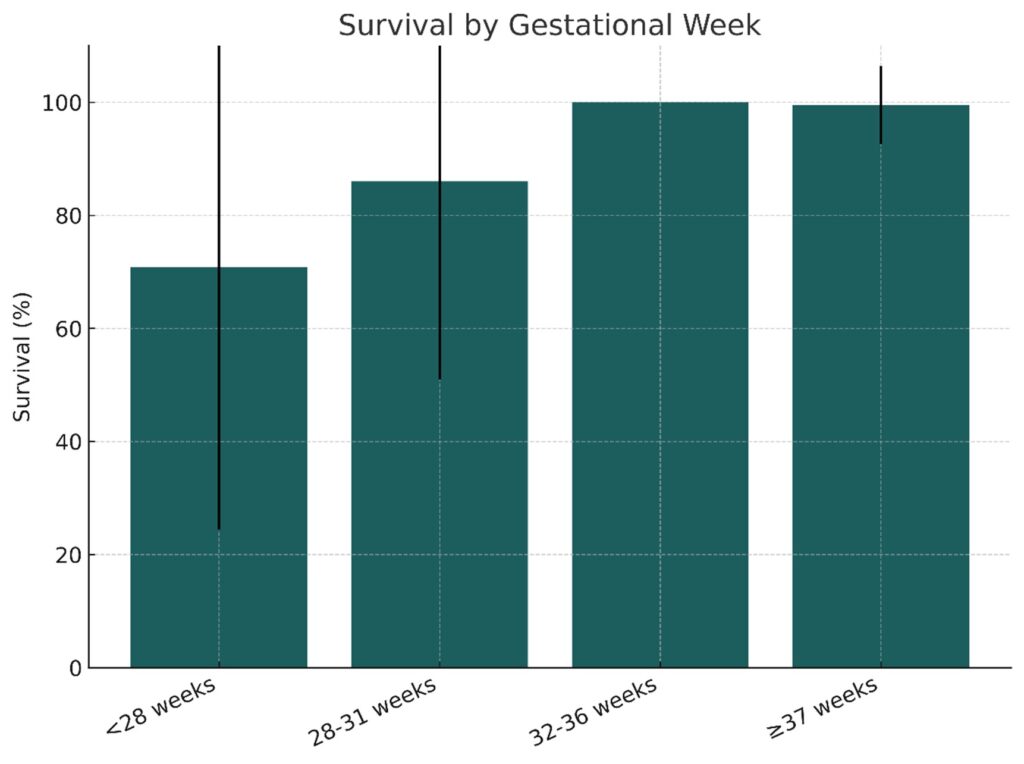 Figure 4: Survival by gestational age group. Error bars represent standard deviation (SD).